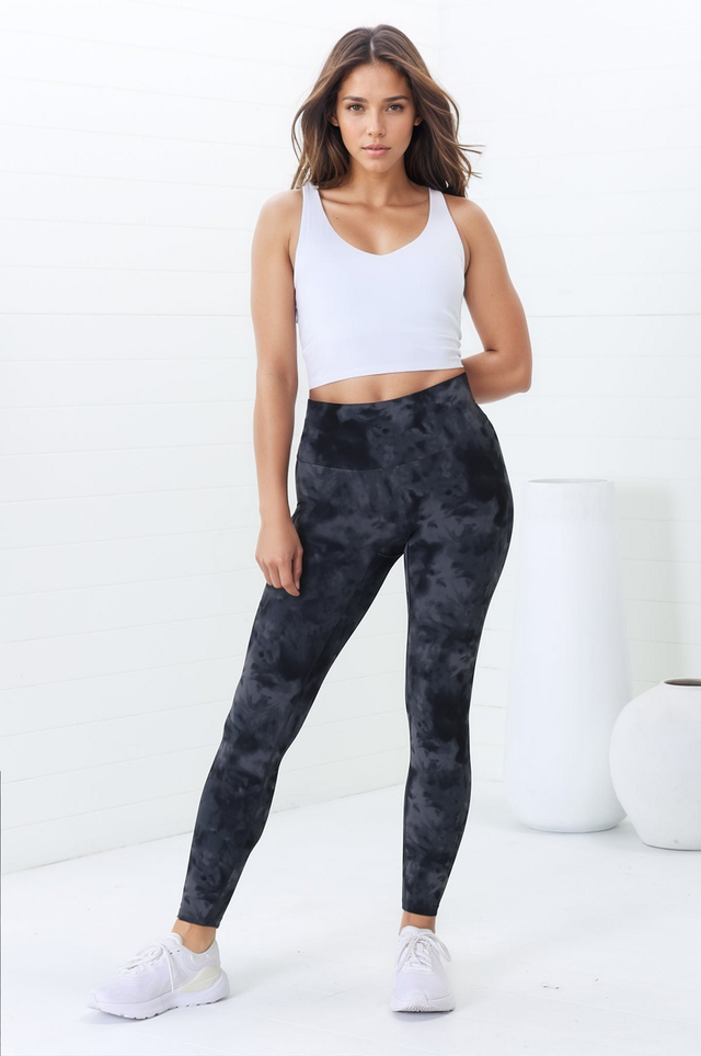 Axel Leggings - High Waisted Full Length Leggings in Grey Tie-Dye