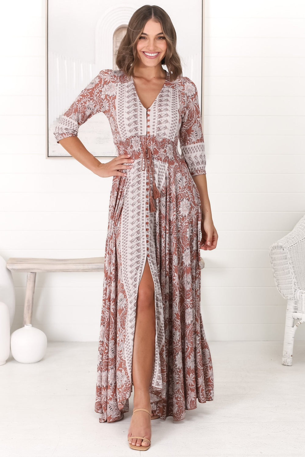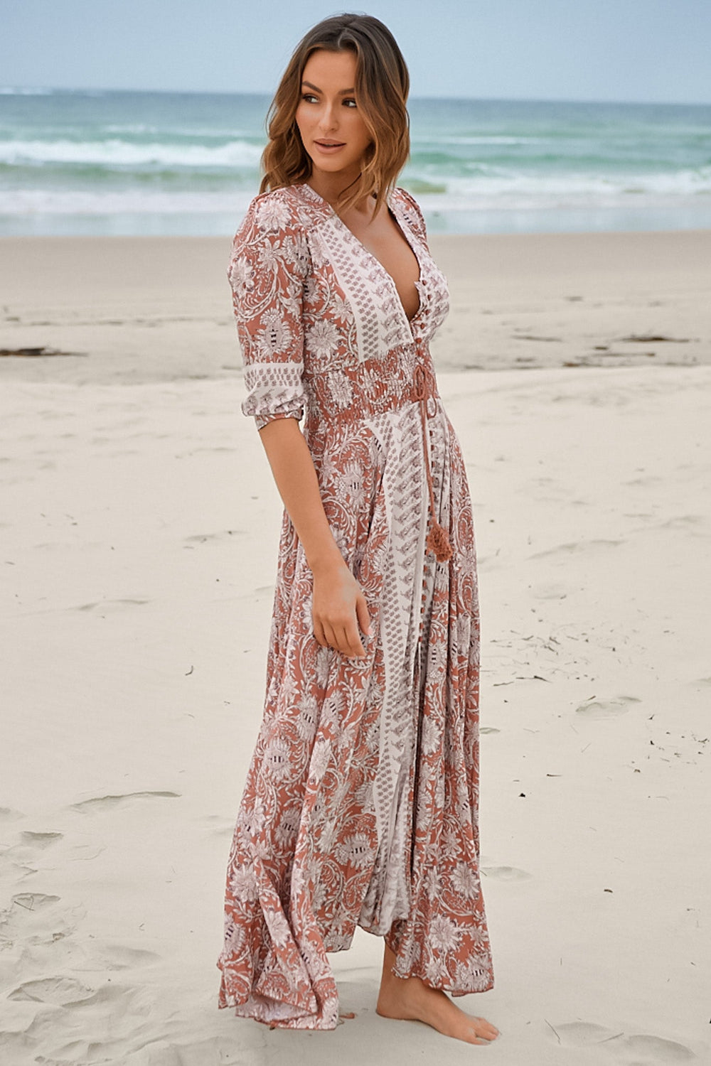 Obsessed with our Jaase x Salty Crush Exclusive Indah Maxi Dress. This stunning dress is the favourite Indiana Style from Jaase and is the perfect bohemian print for every boho lovers wardrobe. Featuring a shirred elastic waistband, a beautiful and feminine lace back panel and a cute tassel tie to bring it all together.