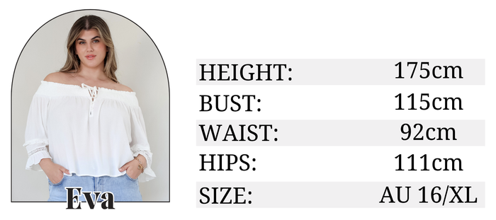 *All sizing is listed in Australian sizes and measurements are listed in centimetres and measured by hand at Salty Crush HQ.