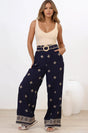 Alesia Pants - High Waisted Embroidered Pants with Belt in Selena Print Navy