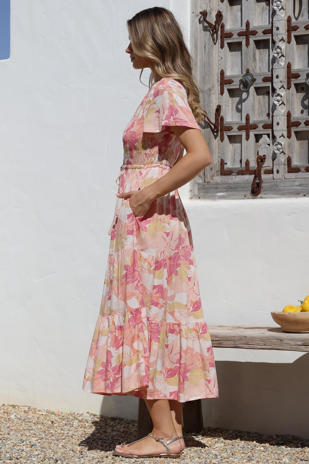 Amaya Midi Dress - Shirred Cap Sleeve A Line Dress in Lola Print