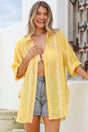 Beachly Mesh Shirt - Cotton Mesh Stripe Relaxed Button Down Shirt in Yellow