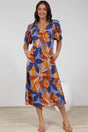 Brie Midi Dress - V-Neck Empire Line Dress with Pockets in Bittersweet Print