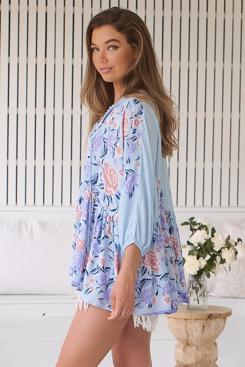 JAASE - Chloe Top: Very Oversized Crochet Trim Neckline Smock Top in Heaven Print