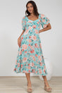 Gisella Midi Dress - Sweetheart Neckline A-Line Dress with Short Sleeves in Helara Print