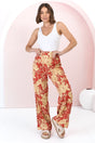 Meet the Ione Pants - vibrant, high-waisted wide-leg pants in a bold floral print. They're complete with a sleek button and zipper closure and practical pockets, perfect for making a chic statement wherever you go!