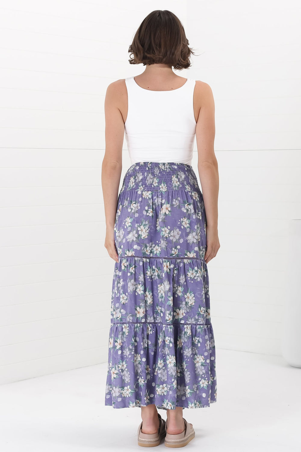Ishaka Maxi Skirt/Midi Dress - Shirred Waistband Tiered Skirt or Dress in Floral Print