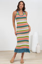 Izumi Maxi Dress - Halter Neck Knit Dress with Tassel Hemline in Rainbow