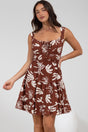 Jessie Mini Dress - Gathered Bodice Spaghetti Strap Sun Dress in Stassie Print Brown
