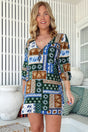 JAASE - Lake Mini Dress: V Neck Shift Dress With Balloon Sleeves in Emerald Cove Print