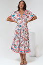 Melba Midi Dress - V-Neck Buttoned Down Dress with Flutter Sleeves in Safia Print