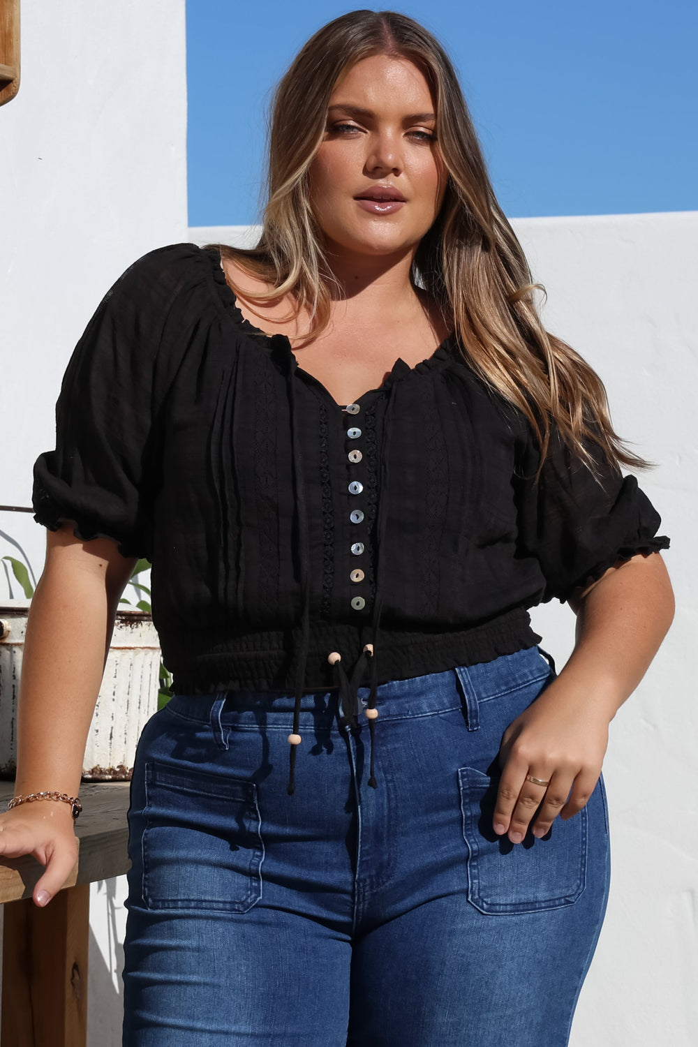 Crushin' on this sweet new crop! Introducing our Nadiya Crop - Black the sweetest delicate white crop that belongs in every babes wardrobe. Perfect paired with your fave jeans, shorts or skirt and sandals for a casual vibe.