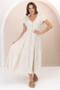Stephan Midi Dress - Cap Sleeve Tortoiseshell Button-Down Tiered Dress in Cream