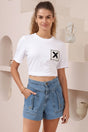 Channel a vintage-inspired aesthetic with our high-waisted Sullivan denim shorts, featuring prominent front pockets that add a touch of utilitarian chic to your look.