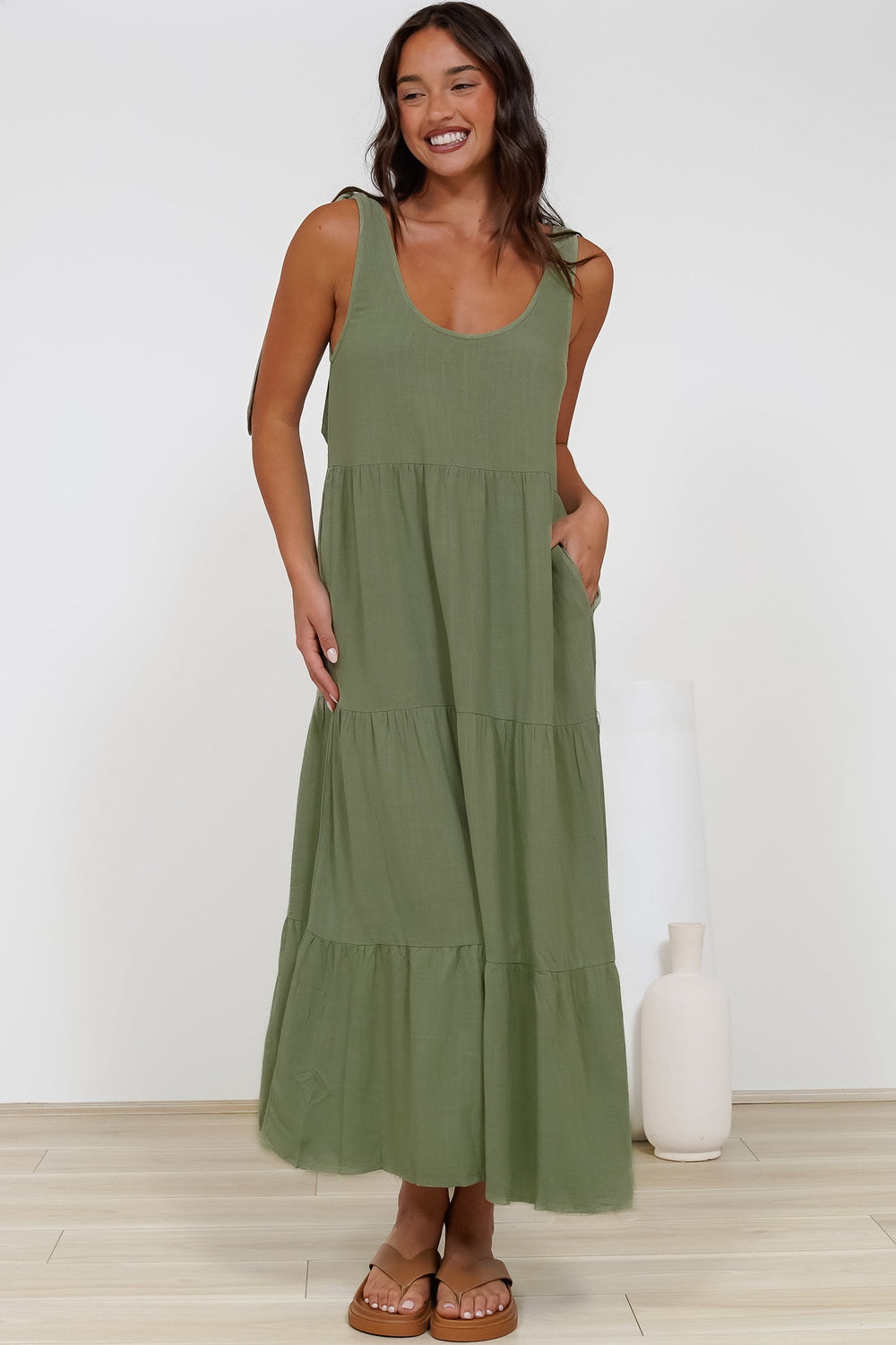 Verona Midi Dress - Tie at Shoulder Straps Sun Dress in Sage